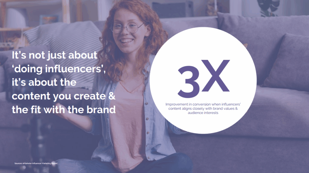 Amid the excitement over influencer marketing ROI, a key insight from the study is often overlooked: success depends on the brand to influencer fit. Making sure that the influencers’ “content aligns closely with brand values” and that they would genuinely use this product without being paid is the most powerful predictor of success.